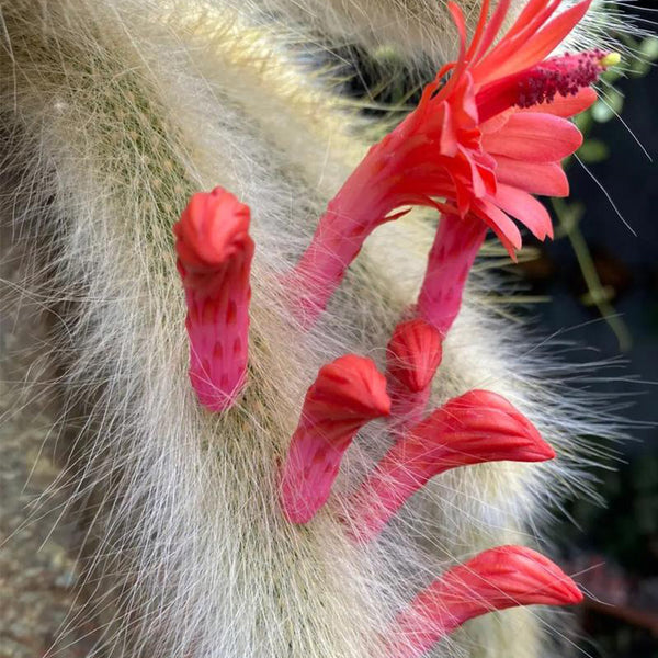◆ The plant's fuzzy stems naturally cascade like animal fur, making it highly ornamental. During summer and autumn, it blooms vibrant orange-red, funnel-shaped flowers that beautifully adorn the hairy stems. This drought-resistant plant dislikes waterlogging and thrives in cool, well-ventilated areas with bright indirect light. It requires shading from intense sunlight during summer. The optimal growing temperature ranges between 15-28℃. Winter protection is needed when temperatures fall below 5℃, while summer temperatures above 30℃ require enhanced ventilation and cooling. Water thoroughly only when the soil is completely dry - approximately every two weeks during active growth, with reduced watering in winter. For cultivation, use loose, well-aerated succulent-specific soil or a custom potting mix with excellent drainage.