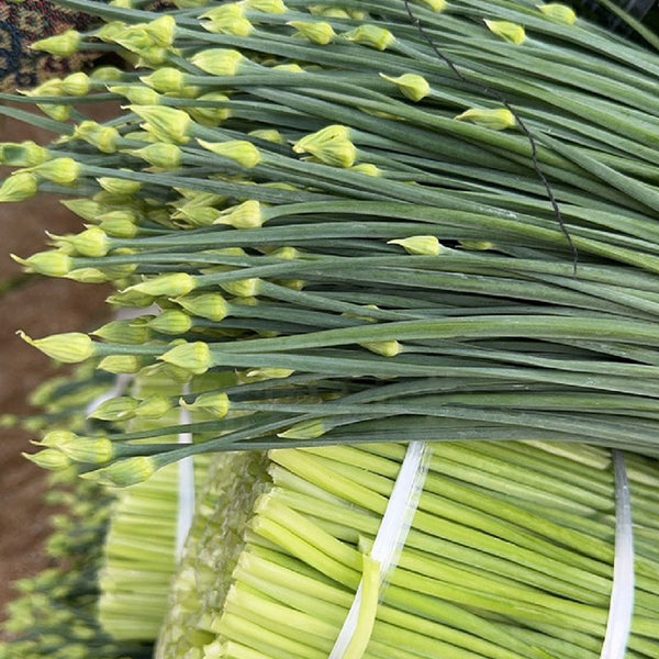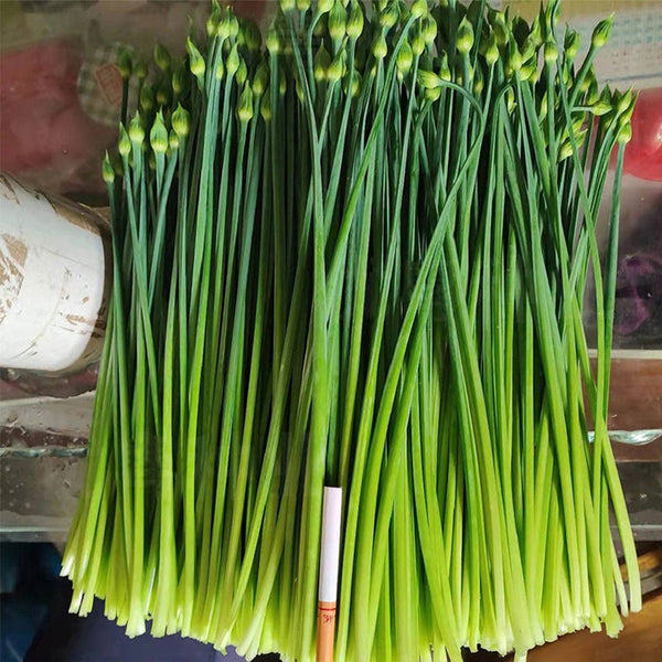 ◆ Primarily cultivated for its tender garlic chives flower stalks (bolts year-round), while also yielding 1-2 harvests of green leaves. Features upright growth, vigorous habit, broad thick dark-green foliage, strong lodging resistance, and exceptional tillering capacity. Exhibits superior traits including cold/disease resistance, premium quality, high yield potential, and wide adaptability. Mature plants reach 45 cm in height with flower stalks exceeding 40 cm—noted for their thick, tender texture and excellent quality. Annual production reaches approximately 3,000 kg of fresh garlic chives flower stalks per mu.